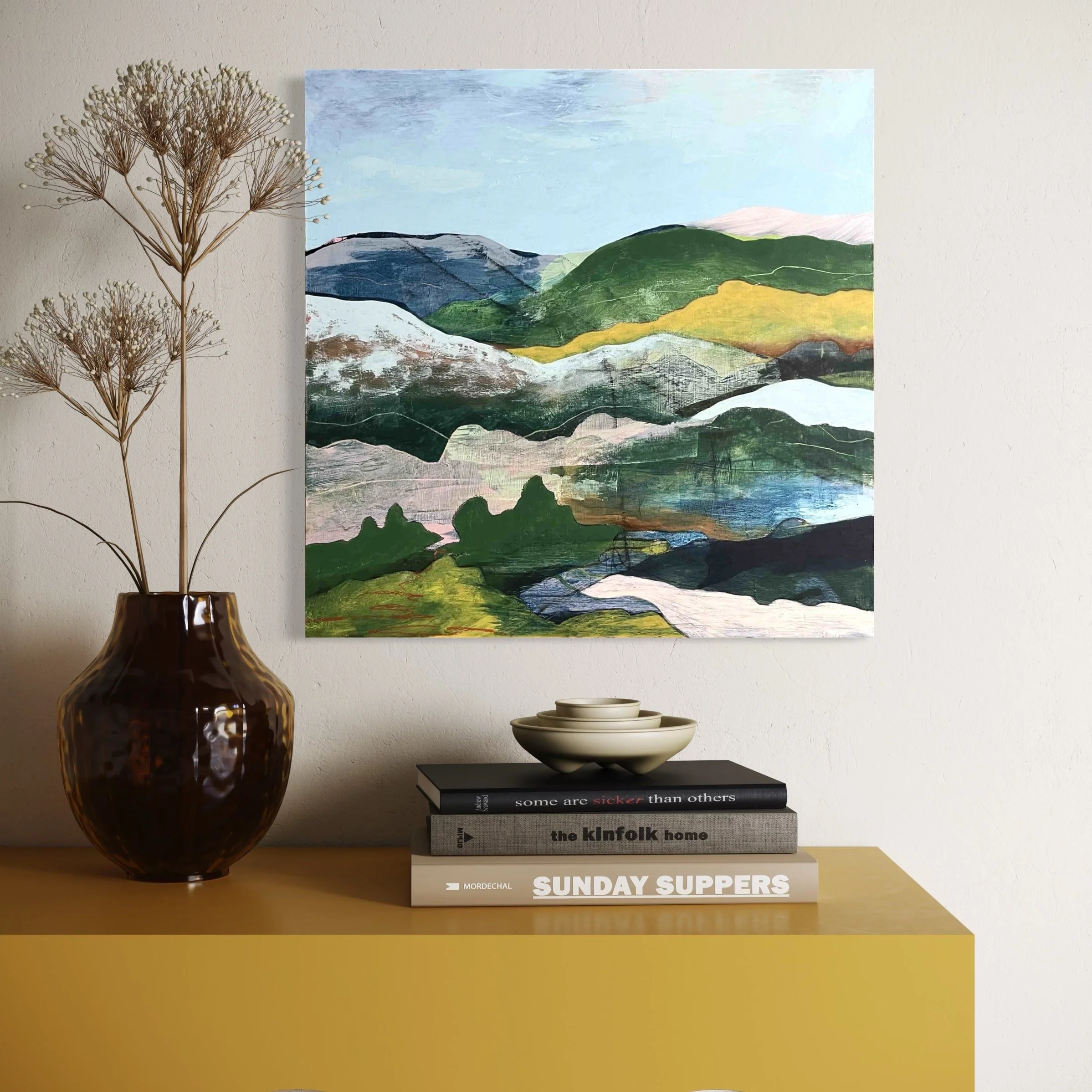 Bring memories of the outside world into your home with a piece of original art. Each painting captures a feeling of being in a particular landscape, created by layers of paint and texture.