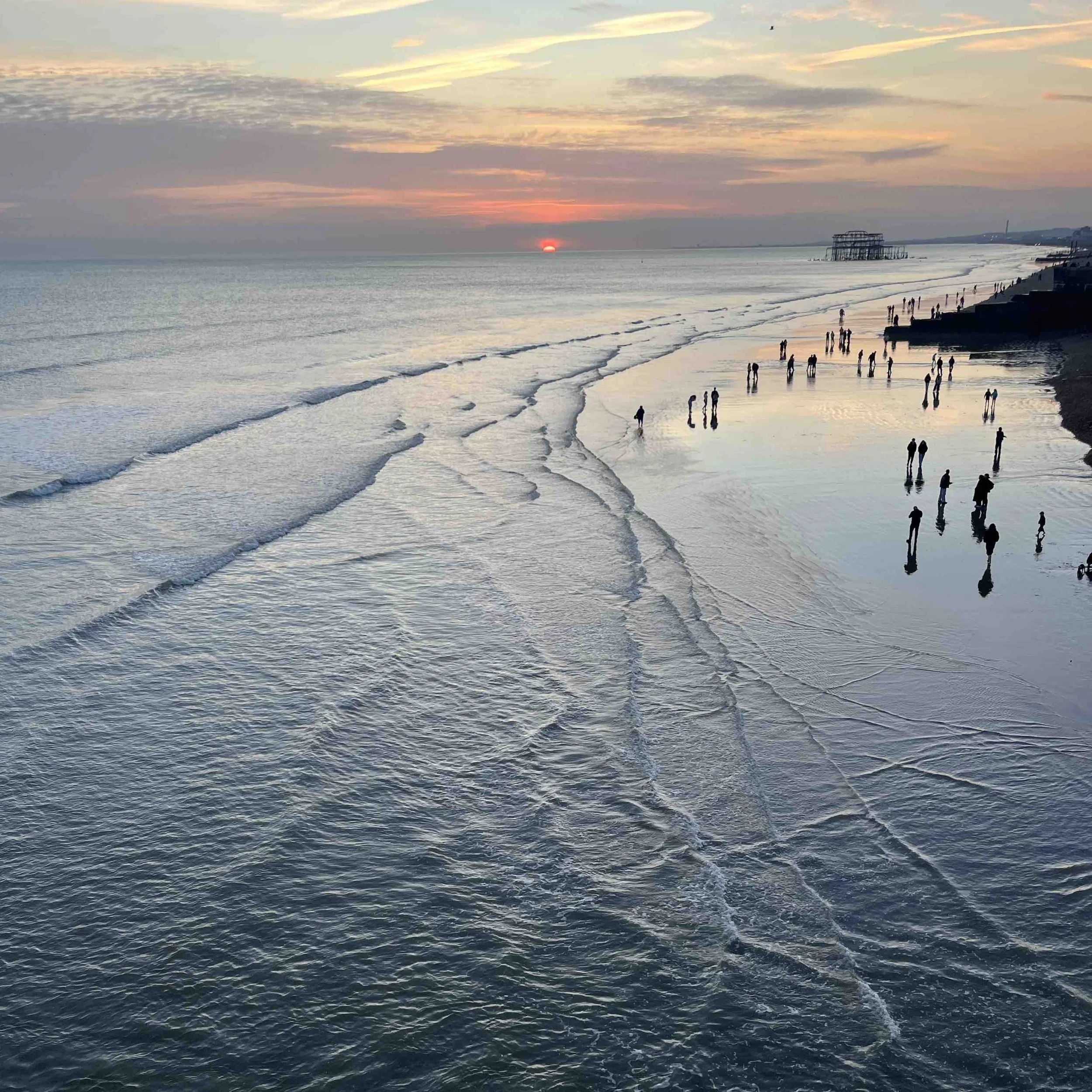 Sunset from Brighton Pier overlooking the West Pier, March 2026